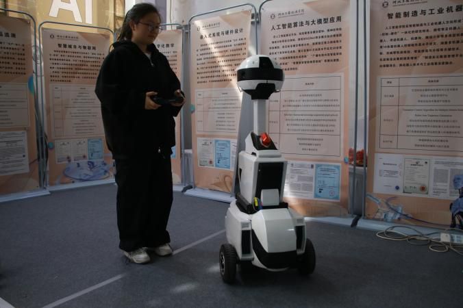2026年3月26日至29日,第十届河北国际工业博览会在石家庄国际博览中心隆重举办。本届展会特设高校科技创新展区,聚焦产学研用深度融合,搭建产业、高校与人才协同创新的平台。人工智能学院院长王静红,教学副院长白向伟,科研副院长孙劼,团总支书记王凤,招生就业办主任陈龙,携教师代表与学生代表共同参展,集中展示学院在机器人、人工智能、数智化应用等领域的创新成果,积极对接产业资源,促进成果转化与人才精准对接。